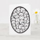 This greeting card shows a dense cluster of stylized cartoon cats tucked closely together inside a dark circular frame, like a cozy group hug between friends 🌷. Most of the cats are drawn in bright white with thick black outlines, making their faces pop against the deep background. Each one has pointed ears with small warm pink-brown accents inside, and tiny curved smiles paired with closed eyes that suggest a tender, contented closeness. The repeated faces fill the circle edge to edge with no empty gaps, creating a snug, communal huddle that feels affectionate without needing any extra props. A short Easter greeting sits near the top in a soft pastel tone, standing out gently against the darker area around the circle 🐰. A smaller line of text is placed near the bottom in a light color, balanced neatly under the packed faces. The circular border is thick and nearly black, enclosing dozens of near-identical white cat faces with matching smiles and softly shaded inner ears.