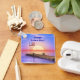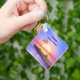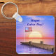 A keychain with my image of a dock on the water with the American flag and setting sun. Text says "Happy Labor Day!".