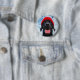 Happy Labrador in a Red Beanie Under a Blue Sky Button