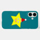 This awesome iPhone case features a cute little yellow five pointed star. The star has a big pair of eyes with shiny black pupils and a happy smile. The star is wearing a red festive hat with a white bobble on top. This design is perfect for spreading the joy of Christmas.