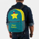 This awesome backpack features a cute little yellow five pointed star. The star has a big pair of eyes with shiny black pupils and a happy smile. The star is wearing a red festive hat with a white bobble on top. This design is perfect for spreading the joy of Christmas. There is custom text so you can include a message. The default message reads Happy Holidays.