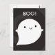 A kawaii ghost on a spooky wooky swirly black background. Great for Halloween.