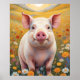 Bring a touch of whimsical charm to your space with this Happy Little Pig Sunny Daisy Field Poster. Featuring a cheerful pig frolicking amidst a field of sunny daisies, this poster is sure to add a bright and cheerful vibe to any room. Perfect for adding a playful touch to your home décor or office space.