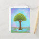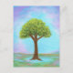 Happy Little Tree Whimsical Landscape Art Blue Postcard