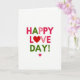This greeting card keeps things simple, with a white background and the message “HAPPY LOVE DAY!” centered on the front. The letters are in a plain, easy-to-read print style, and the words stack neatly in the middle of the card. The colors switch between deep red, soft pink, and dark green, which makes the message feel lively without being too much. In the word “LOVE,” the “O” is replaced by a deep red heart, and it looks like the main symbol of caring right at the center. There’s also a smaller red heart placed just below the exclamation mark, like a little extra note of love. With no extra pictures or scenery, the focus stays on the words and the hearts, making it feel direct and sincere. It’s a meaningful card to give when you want to say “I care about you” in a straightforward way, whether it’s for a partner or a close friend 🥰❤️.