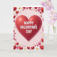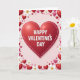 This Valentine’s Day card celebrates love with a bright, joyful design full of charming details. At the center sits a bold red heart, glossy and eye-catching, outlined with soft pink dashed lines that resemble gentle stitching. Across the heart, the message “HAPPY VALENTINE’S DAY” appears in clear white lettering, standing out beautifully. The background is a soft pastel pink filled with floating hearts in shades of ruby and fuchsia, paired with delicate white flowers. Each flower features a warm golden center that adds a touch of elegance. The mix of hearts, blooms, and glowing color creates a romantic, cheerful feeling, turning a simple message into a heartfelt Valentine’s Day keepsake. ❤️💌🍫