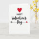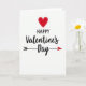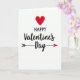 This cute card presents a timeless and heartfelt design that feels warm and thoughtful. At the top, a large red heart takes center stage, outlined with short white dashed lines that give it a charming, hand-finished look. Beneath the heart, the word “HAPPY” appears in bold, easy-to-read lettering, followed by “Valentine’s Day” written in flowing cursive that adds a romantic touch. Cutting through the text is an arrow, featuring a black shaft and a sharp red tip, reminiscent of Cupid’s arrow striking love. The bright white background allows the red, black, and white details to stand out clearly. Altogether, the card feels sweet and sincere, making it a lovely way to share Valentine’s Day wishes with someone special