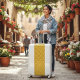 The luggage itself is awesome. So much utility for a carry-on bag. Lots of zippered pouch compartments to keep everything from getting everywhere. And it has a TSA approved lock and a dust cover! Love it. The printing is terrific. Love the way it wraps around the top and bottom. So happy the bumpers, wheels and handle color matches the design perfectly. She's gorgeous.