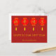 This happy lunar Chinese new year theme new year holiday greeting postcard features four red Chinese traditional styled lanterns with yellow ribbons and pendents, four Chinese golden characters: Happy New Year and custom family name text on custom Chinese red background is a nice personal or business choice for sending warm personal and business message to celebrate lunar/Chinese new year. Customize it to make it special.