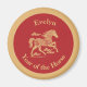 This red magnet can help you celebrate the Chinese Lunar New Year of 2026, which is the zodiac Year of the Horse. Commemorate the prosperity and good fortune of the year with this gold look scrollwork horse and clouds on a deep red background, encircled in gold. The phrase "Year of the Horse" appears in a festive typeface, but you can edit the text, such as replacing with your monogram, as long as it fits within the design The background is dotted with a golden pattern of auspicious, or lucky, clouds on red.
