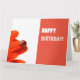 Inclusion of marijuana beetle crawling over the orange petals of a gerbera. Light and friendly, with a white background, and limited to the right by a frame with the same color of the petals. Happy Birthday is highlighted in white, matching the background of the petals in the orange frame. Modern, bright and friendly design.