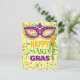 happy mardi gras postcard with confetti and a mask