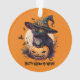 "Happy Meow-O-Ween" Black Cat & Jack-o-Lantern Ornament