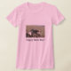My overall review is that the T-shirt is nice, it fits true to size however the font is significantly smaller than advertised and you can't read it. The printing is unreadable and there is a strain to read it. It does not look like the advertised product. Maybe the shirt color is darker or a larger more visible font should have been used. Photos with and without flash and font is barely legible.