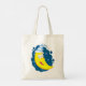 A happy yellow moon face wearing a blue and white hat. This design looks really effective on this Tote Bag