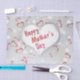 Modern and lovely paper cut illustration featuring a folded paper heart on a light bokeh background with falling red hearts and trendy painted script letters.