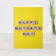 This card shows a cheerful arrangement of light-toned wooden letter tiles spelling out “Happy Mother’s Day” in three neat rows, like a sweet note set out with care ❤️. Each tile has a black letter centered on the front, with a tiny number tucked into the lower corner, giving it a classic word-game look. The words sit squarely in the middle of the design, and the even spacing makes the message feel calm and steady, like a reassuring hug. A bright yellow background surrounds the tiles, creating a sunny, friendly setting that feels like a warm kitchen table moment 🌼. Soft, even lighting keeps the wood grain visible, adding a gentle, natural texture that pairs nicely with the crisp lettering. The tidy layout and close alignment of the tiles suggest someone took their time to place each piece with affectionate attention. Behind everything, the yellow surface has fine horizontal ridges that add subtle depth, while the tiles remain the sharp focal point.