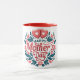 Celebrate the special woman in your life with this beautifully crafted "Happy Mother's Day" mug. Featuring a warm coral-pink script that feels almost embossed, this graphic is framed by a lush, circular arrangement of deep teal and forest green leaves, delicate pink blossoms, and twin interlocking hearts at the top. The high-contrast color palette pops brilliantly, offering a modern yet timeless aesthetic.