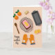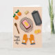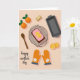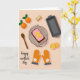 Designed with a cozy overhead baking scene, the card sits on a warm peach background that feels like a kitchen moment shared with love ❤️. In the center, a rectangular loaf cake rests on a dark wire cooling rack, topped with pale pink frosting and two bright orange citrus slices that look carefully placed, as if someone paused to make it extra special. At the upper left, two whole oranges with small green leaves add a fresh, just-picked touch, and a few more citrus slices appear near the lower right for balance. A wooden spoon lies along the left side, while an empty baking pan sits near the top with a small rectangular piece of a baking staple nearby, hinting at the steps taken to make this treat. Two orange oven mitts with a simple white flower pattern and decorated cuffs sit together at the lower right, like a pair set down side by side after baking for someone dear 🌼. Along the bottom left, the phrase “happy mother’s day” appears in small, flowing black lettering. Soft, even lighting creates gentle shadows around the rack, spoon, oranges, and mitts on the peach surface.