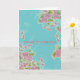 Happy Mother's Day card in Korean. Pretty pink chrysanthemum flowers on teal background.