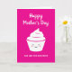 Happy Mother's Day card with cute smiling cupcake. Sweet food design with customizable pink background. Add your own name and message. Also available as big extra large oversized card. Fun design for mom. Have it mailed directly from Zazzle to any address. Funny smile face cup cake drawing with rosy cheeks.