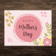 Celebrate Mother's Day with this beautiful postcard featuring a charming floral design. The front of the card is adorned with the words "Happy Mother's Day" in elegant script, encircled by lovely pink and yellow flowers. This postcard is perfect for sending heartfelt messages to your mom, letting her know how much she means to you. The pastel colors and delicate floral illustrations add a touch of elegance and warmth, making it a delightful keepsake for any mother.