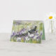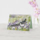 Happy Mother's Day greetings with a mama duck and her ducklings taking a stroll up a gentle hill through a wildflower meadow of white and purple flowers hand drawn with ink and watercolor. On the inside is a message of Christian blessings and a shade of green that can be edited to fit your needs.