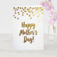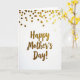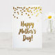 The front design shows a bright white card with a centered “Happy Mother’s Day!” message in burnished gold lettering, giving it a warm, affectionate glow ❤️. The words sit in the middle with generous space around them, like a quiet pause that lets the message breathe. The gold strokes look smooth and flowing, adding a gentle, romantic touch—as if the letters were written with extra care for someone cherished. Above the text, small round gold dots scatter from the top edge, creating a light, celebratory shower that feels like a sweet little surprise. Their uneven spacing keeps the scene lively, like confetti falling during a hug or a shared laugh. Soft, even lighting makes each dot catch the light differently, so the gold shifts from bright shine to softer gleam 🌼. Along the upper margin, the golden circles cluster more densely near the top and thin out as they drift downward toward the centered message.