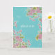 Happy Mother's Day in Chinese. Pretty pink chrysanthemums on teal background