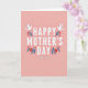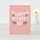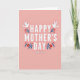 This card features “HAPPY MOTHER’S DAY” centered near the top in white, softly rounded sans-serif letters on a pastel pink background, setting a gentle, affectionate tone ❤️. Two white doves with outstretched wings sit on either side of the headline, angled inward as if sharing a tender moment above the message. The lighting looks softly diffused, giving the pink field a calm, soothing glow rather than sharp contrast. Below the main words, “with Love” appears in smaller white lettering, placed just under the headline and spaced to feel intimate and close. Near the bottom, matching floral accents frame the lower area with small red blossoms and deep teal-blue leaves, balanced left and right like a quiet embrace. The limited palette keeps the focus on the caring look of the doves and the gentle relationship between the elements 🌼. The lower corners show red minimalist flowers paired with teal leaves that curl upward toward the center.
