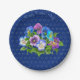 Happy Mother's Day! Beautiful Design with Pansy Violet Flowers, Gold hearts pattern, navy blue background. Floral Stylish Design, Viola Tricolor Pansy Watercolor Illustration, Wishes text "Happy Mother’s Day!" Text template. Personalise them by adding your wishes text and Names. Crafts & Party Supplies > Party Supplies > Tableware > Paper & Party Plates