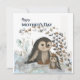 Personalize this cute square card featuring beginning of spring with a penguin ,a baby penguin and beautiful snowdrops. Updated the text to your liking.