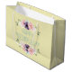 Pretty Mother's Day gift bag with watercolor floral design and fern green typography on a buttercream background. The design features flower garlands of wild roses in shades of pink, cream peach and cassis purple. The wording reads "happy mother's day" in attractive vintage lettering. Please browse our store for matching items or alternative designs.