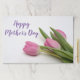 A beautiful purple script says 'Happy Mother's Day'. Three pink tulips accompany the text.