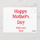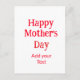 Happy mother's day red add text simple minimal mom postcard