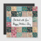 This vibrant design showcases a charming quilt pattern design, perfect for celebrating Mother's Day. The patchwork is composed of a variety of colorful floral fabrics, creating a cheerful and heartwarming esthetic. In the center, a handwritten message reads "Stitched with Love - Happy Mother's Day," adding a personal touch to the design. This image evokes feelings of warmth, love, and appreciation.