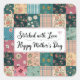 This vibrant design showcases a charming quilt pattern design, perfect for celebrating Mother's Day. The patchwork is composed of a variety of colorful floral fabrics, creating a cheerful and heartwarming esthetic. In the center, a handwritten message reads "Stitched with Love - Happy Mother's Day," adding a personal touch to the design. This image evokes feelings of warmth, love, and appreciation.
