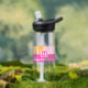 I ordered a custom water bottle and the design came out better than I thought. I like how the water bottle has a gloss finish and feels slick. The letters and numbers on it have an outline you can feel and that’s my favorite part. It doesn’t smell like metal on the inside! That’s what I was scared of. Beautiful work. Will definitely order more in the future. Thank you!
