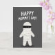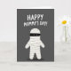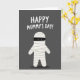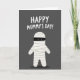 This card features a minimalist graphic on a deep charcoal-gray background, with a cute, bandage-wrapped character filling the lower two-thirds of the design like a friendly, ancient reanimated figure. Its body is creamy white with soft gray lines and light shading that suggest layered wraps, and the rounded arms and legs give it a sweet, approachable shape. A black horizontal band covers the upper face, leaving two small white eyes that seem to glance up with a tender, slightly bashful look ❤️. Centered above the character, the phrase “HAPPY MUMMY’S DAY!” sits near the top in thick, rounded white lettering that stands out sharply against the dark backdrop. The spacing feels balanced, with the text hovering comfortably above the figure to keep the focus on their gentle expression. A faint, diffuse shadow beneath the character anchors it to the background, adding a quiet sense of closeness and warmth 🌼. The only strong dark accent is the eye band, while the rest stays in soft whites and grays with subtle wrap texture throughout. The figure’s wraps show thin gray overlap lines across the torso and limbs, with a soft shadow pooling just below its feet.