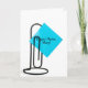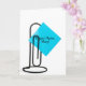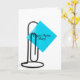 Aqua blue paper with Happy Name Day message on giant black paper clip isolated on white.