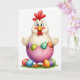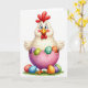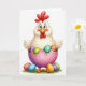This card shows a fluffy white bird popping up from a large cracked pink eggshell, its wide sky-blue eyes meeting yours with a sweet, friendly look and a soft blush on its cheeks. Small red details on its head and under its beak add warm contrast against the pale feathers, giving it an affectionate, approachable presence. The background is bright white, keeping the focus on the central character and making the pastel tones stand out without feeling busy. A short Easter greeting sits near the top in a gentle pink color, centered above the bird for easy reading 🌷. Inside the shell and around the base, several shiny decorative eggs are tucked like little gifts, suggesting a shared springtime surprise between friends 🐰. The eggs include purple, green, blue, and orange, with a few dotted in small white spots that echo the light background. The cracked shell’s jagged rim frames the bird like a cozy nest, while a few thin blades of green grass peek out along the bottom edge. The pink shell pieces curve outward with uneven cracks, and the colored eggs cluster tightly at the base in a neat semicircle.