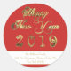 Happy New Year 2019 Red and White Gold Script Classic Round Sticker