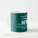 Stylish teal COFFEE MUG for the New Year 2020 with the message GOD MAKES ALL THINGS NEW with HAPPY NEW YEAR in white typography. The 2020 is written in lighter teal script, with the CUSTOMIZABLE Bible verse from Revelation, which you can personalize with your own custom text, name of church/organization, or your name. There is optional text which you can delete as required. This is an ideal New Year giveaway for work colleagues (or employees), church groups, etc. and is part of the NEW YEAR Collection by Berean Designs.