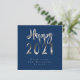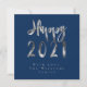 Happy New Year 2021 Chic Blue Silver Gray Script Holiday Card