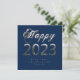 Happy New Year 2023 Chic Blue Silver Gray Script Holiday Card