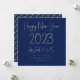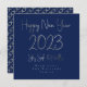 Happy New Year 2023 Elegant Silver Script Blue Holiday Card