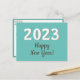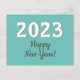 Happy New Year 2023 Typography Turquoise Postcard. The design has a turquoise background and modern white and grey typography - you can customize all the text on the postcard.