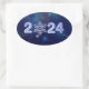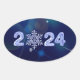 Happy New Year 2024. Ice Numbers and Snowflake Oval Sticker