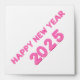 Happy New Year 2025 card, with transparent background. The stylish font is in attractive pink color with baloon like 3d design.
