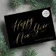 Classy elegant minimal faux gold Happy New Year script simple black business corporate winter holiday card. Easy to personalize with your company's logo, name, and text on both sides.